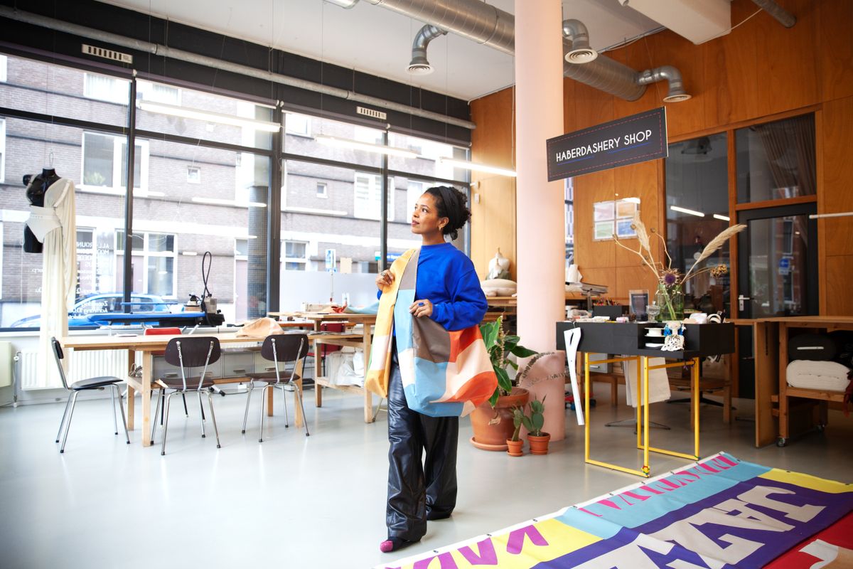 But what happens to the giant cloths when new festivals and programs are announced? So far, the cloths have been rolled up and sent to the basement, where they were forgotten by everyone. But that's recently changing. Telma Patricia Fonseca Monteiro is giving the cloths a new life in the form of the Doelen Shopper.