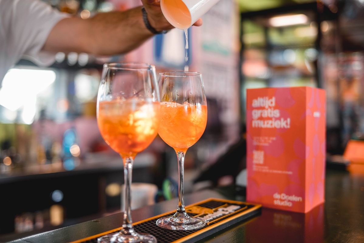 Music is number one at the Doelen Studio, but this is also the place to be for a delicious espresso martini, a cup of coffee or a beer. And great news for students: show your student ID and get a 15% discount on the entire menu until December 31, 2025!