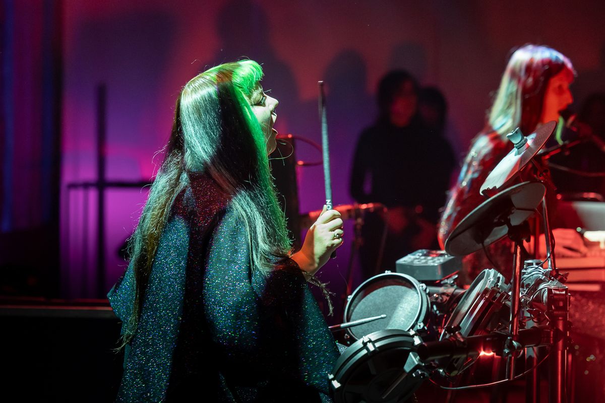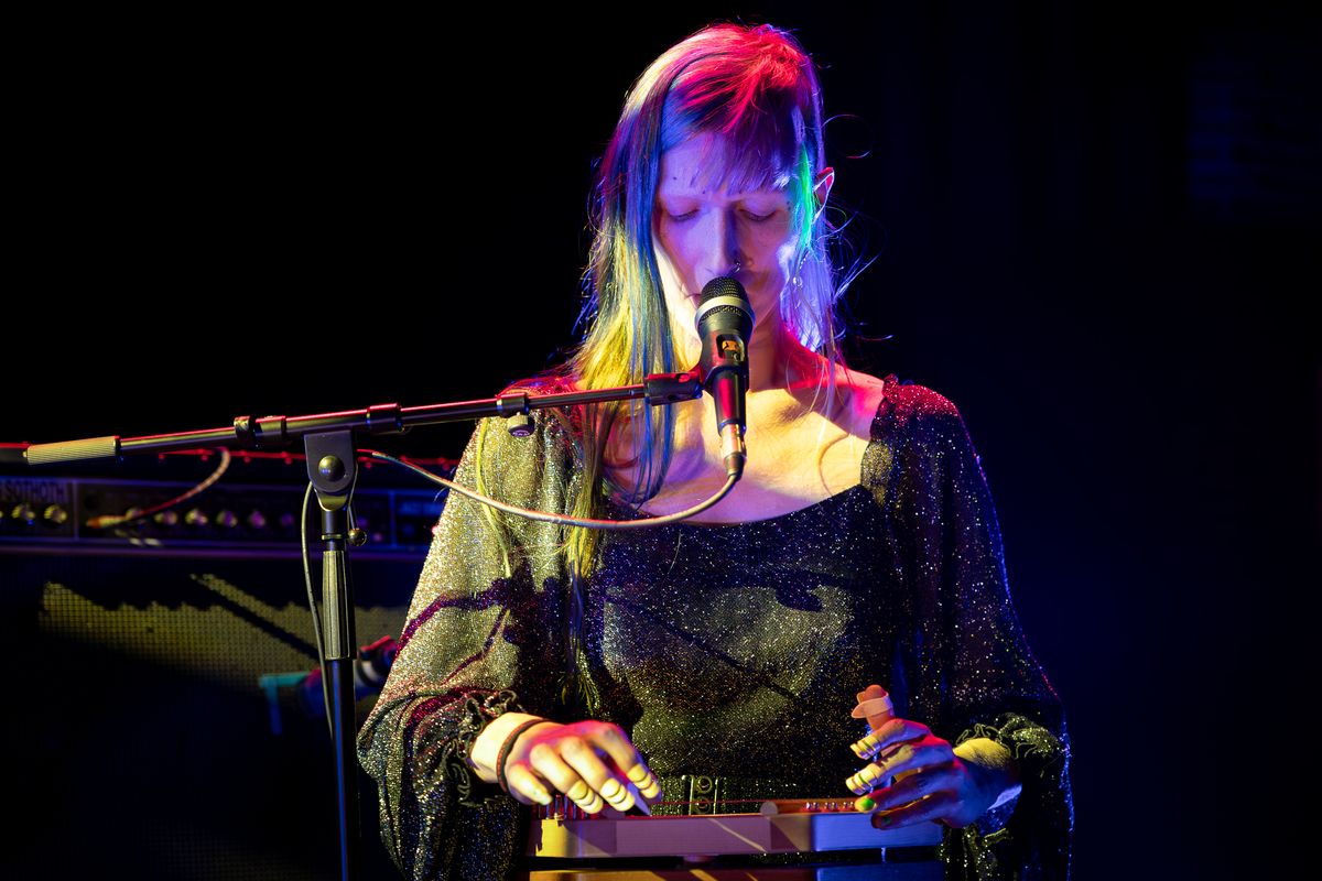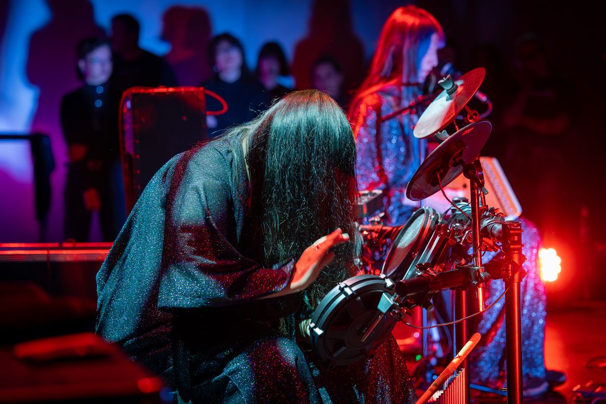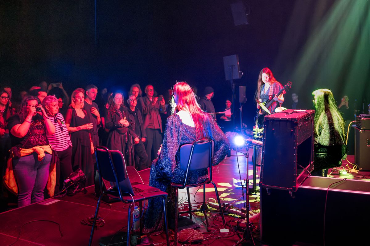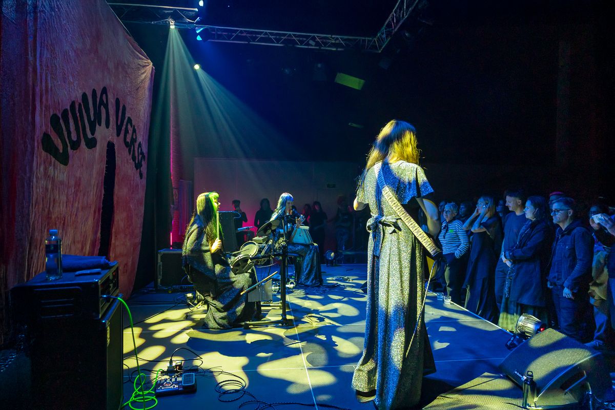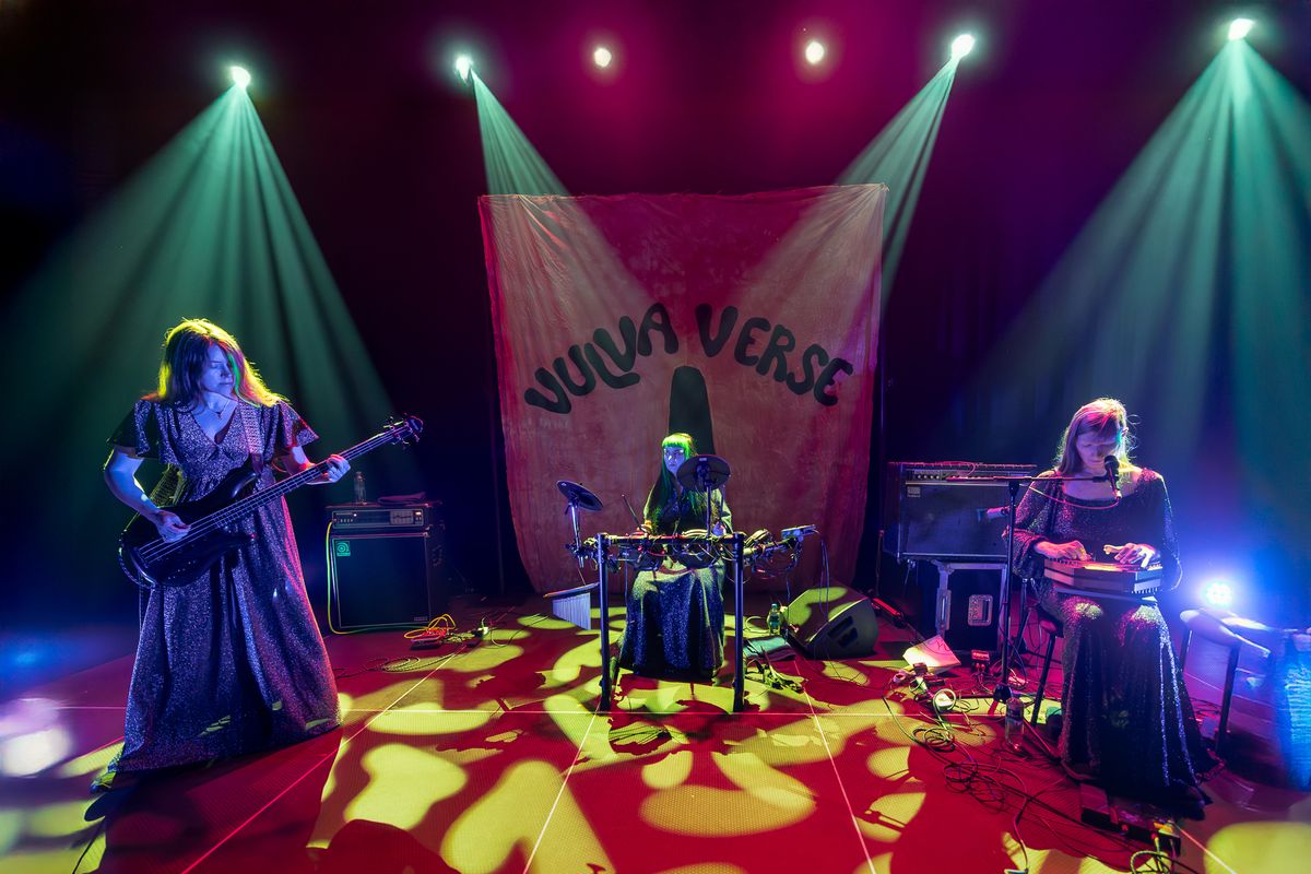 Musicians from Tristwch Y Fenywod deeply immersed in performance during Vulvaverse Presents.