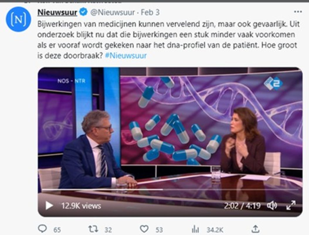 · Nederland loopt met een DNA-paspoort voor medicatie wereldwijd voorop: in iedere apotheek zijn adviezen beschikbaar voor meer dan 60 geneesmiddelen.