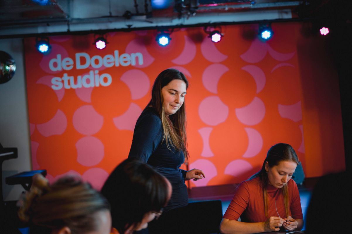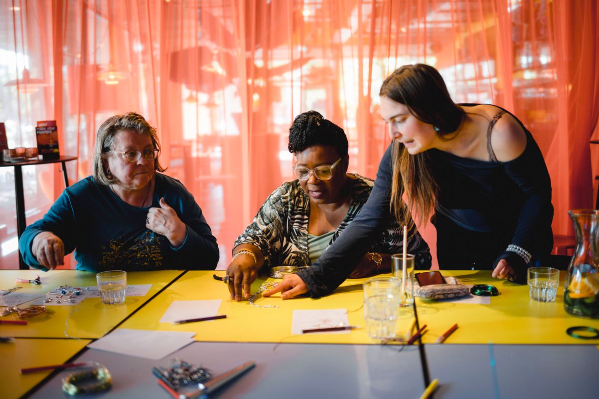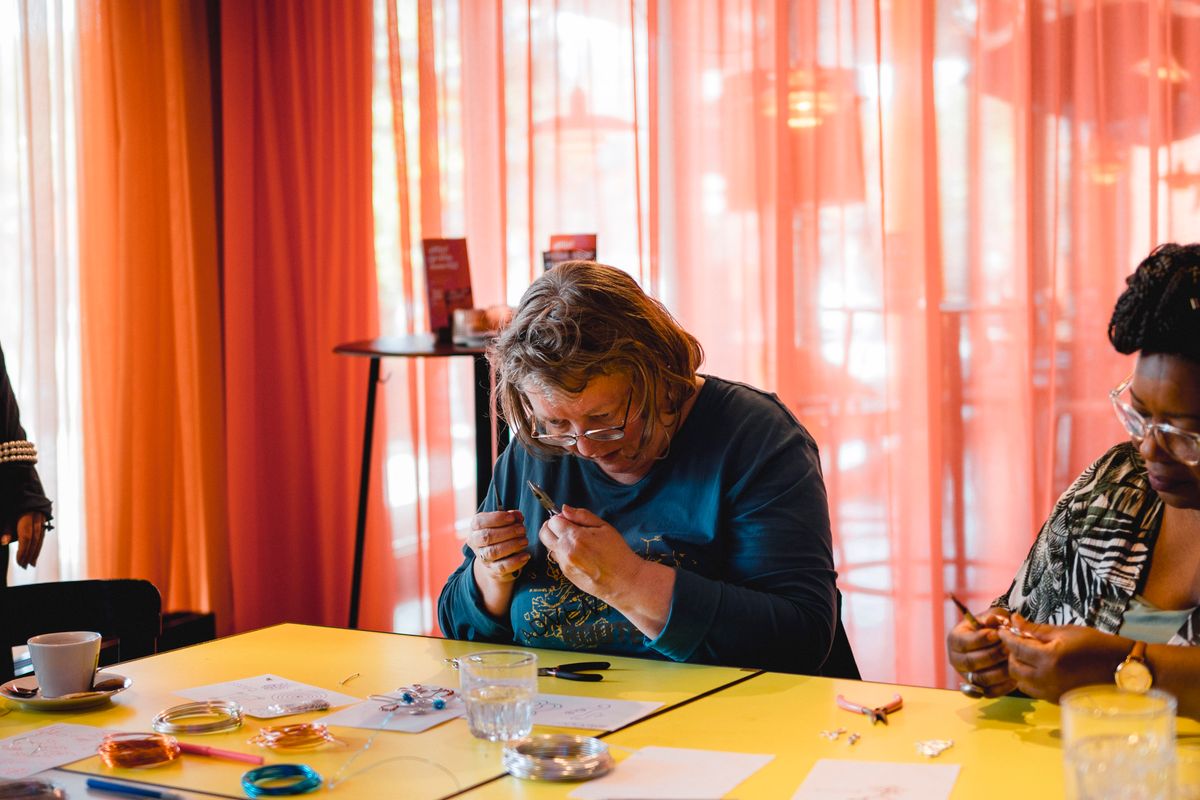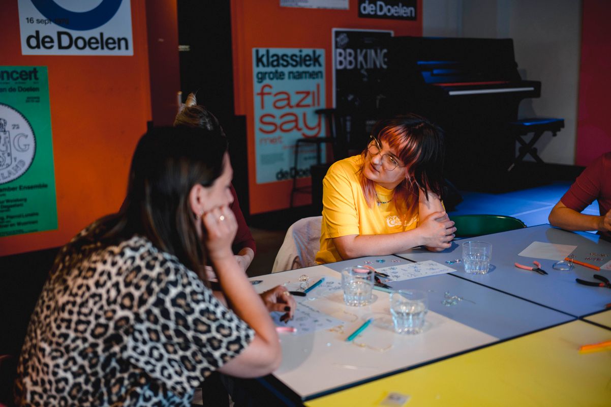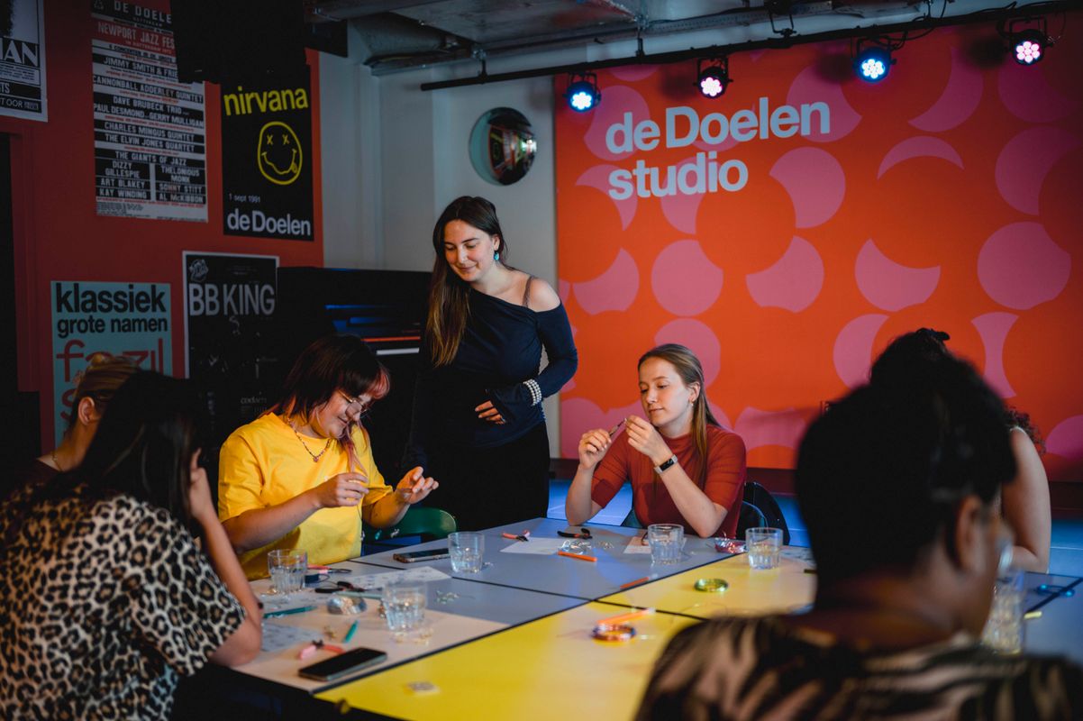 Een serie creatieve sessies in de Doelen Studio: Lilian Beentjes leerde deelnemers sieraden maken van aluminium, met oog voor detail en ruimte voor experiment.