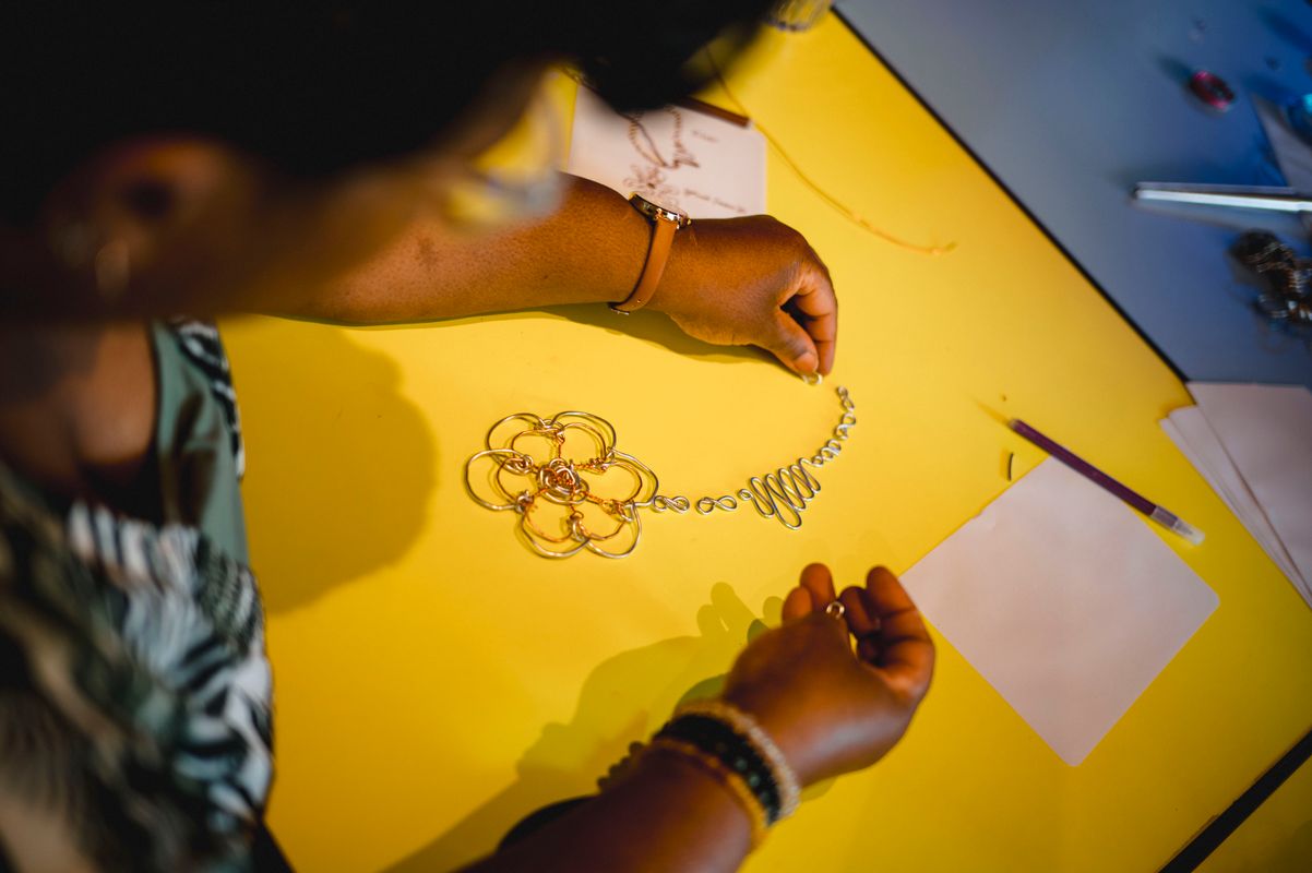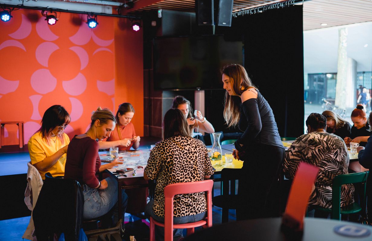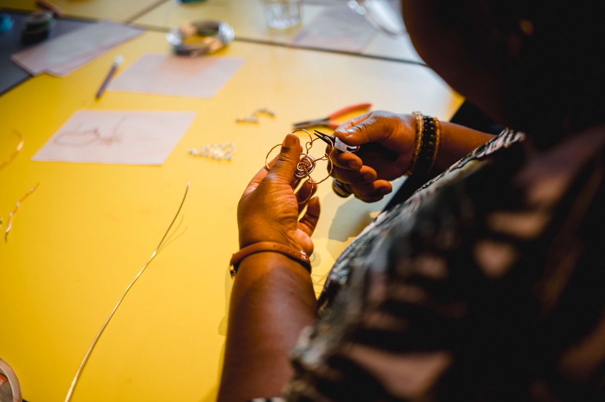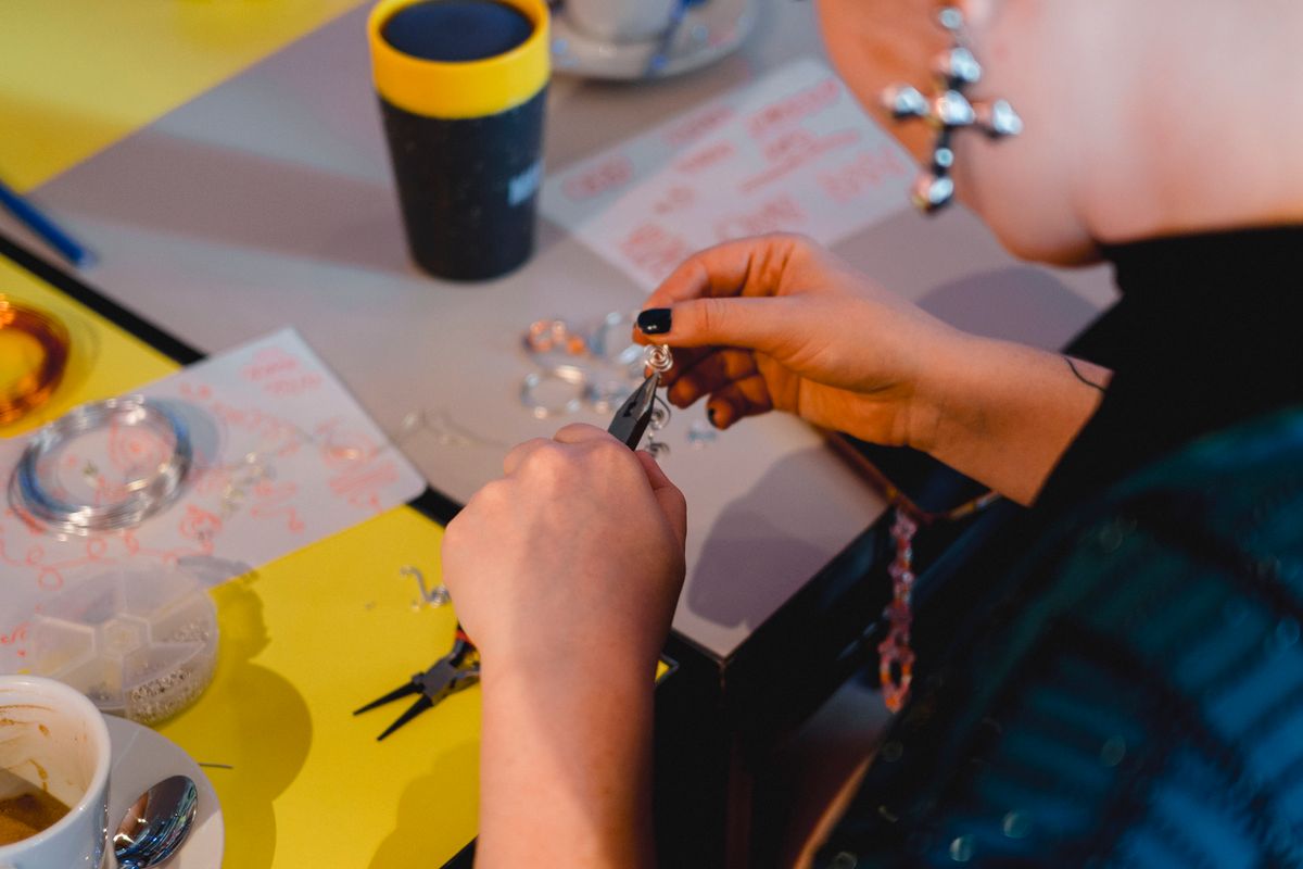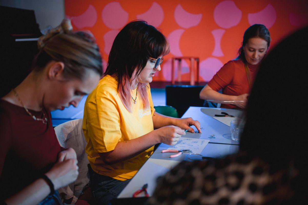 Een serie creatieve sessies in de Doelen Studio: Lilian Beentjes leerde deelnemers sieraden maken van aluminium, met oog voor detail en ruimte voor experiment.